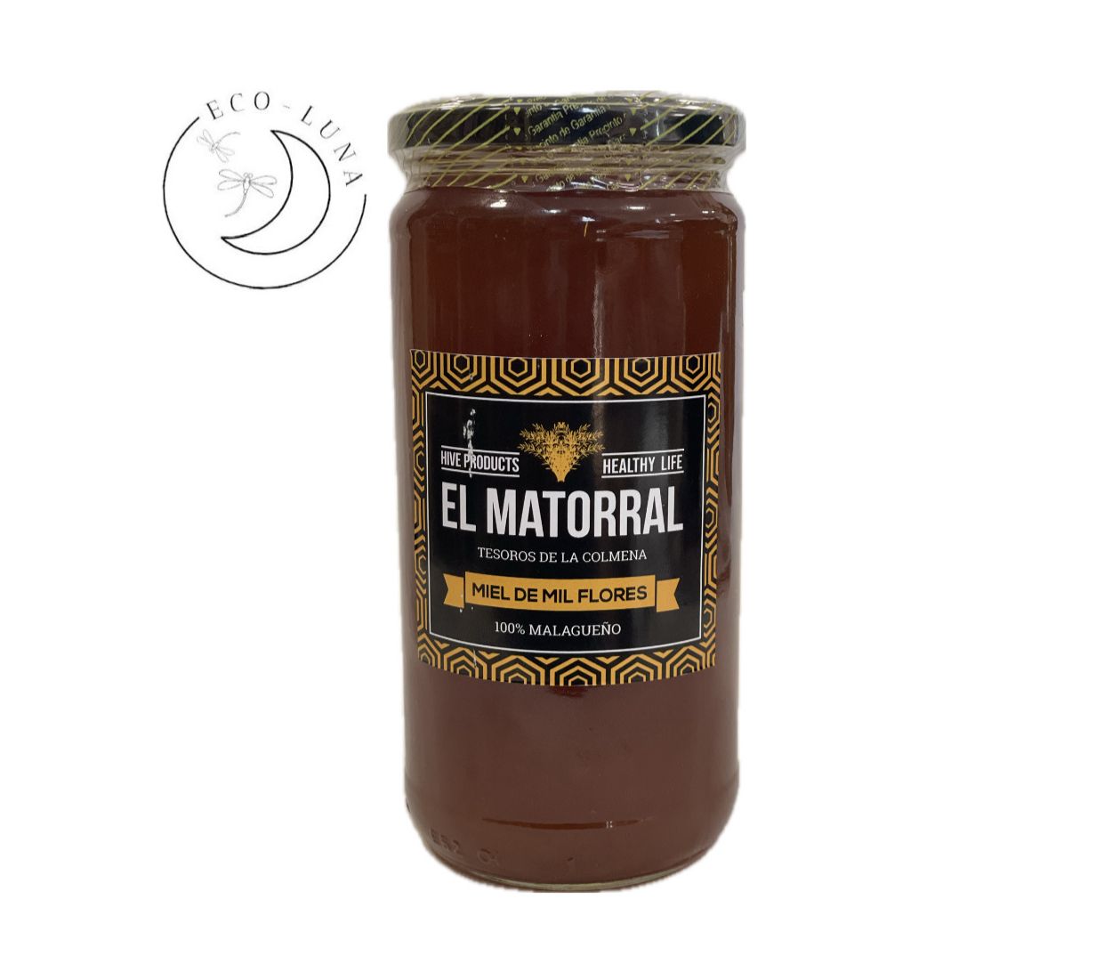 La Miel de Mil-flores “El Matorral” es un producto ecológico malagueño que ofrece una experiencia auténtica de sabor: dulce y floral, con matices mediterráneos gracias al tomillo y romero, capturada de forma artesanal directamente del panal. Su color ámbar, aroma persistente, y sabor equilibrado la hacen ideal para todo tipo de recetas, desde infusiones hasta postres o carnes. Además, su textura varía naturalmente, reflejando la diversidad botánica del entorno malagueño