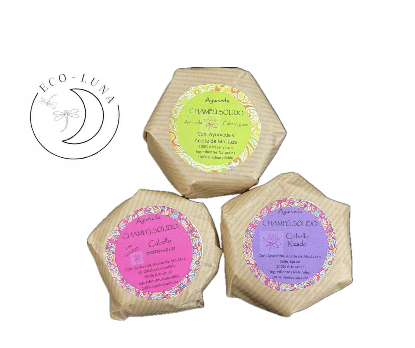 Estos champús se preparan con plantas medicinales, aceites naturales y extractos herbales, sin químicos agresivos ni sulfatos, para cuidar el cabello de manera integral y respetuosa con el cuero cabelludo.